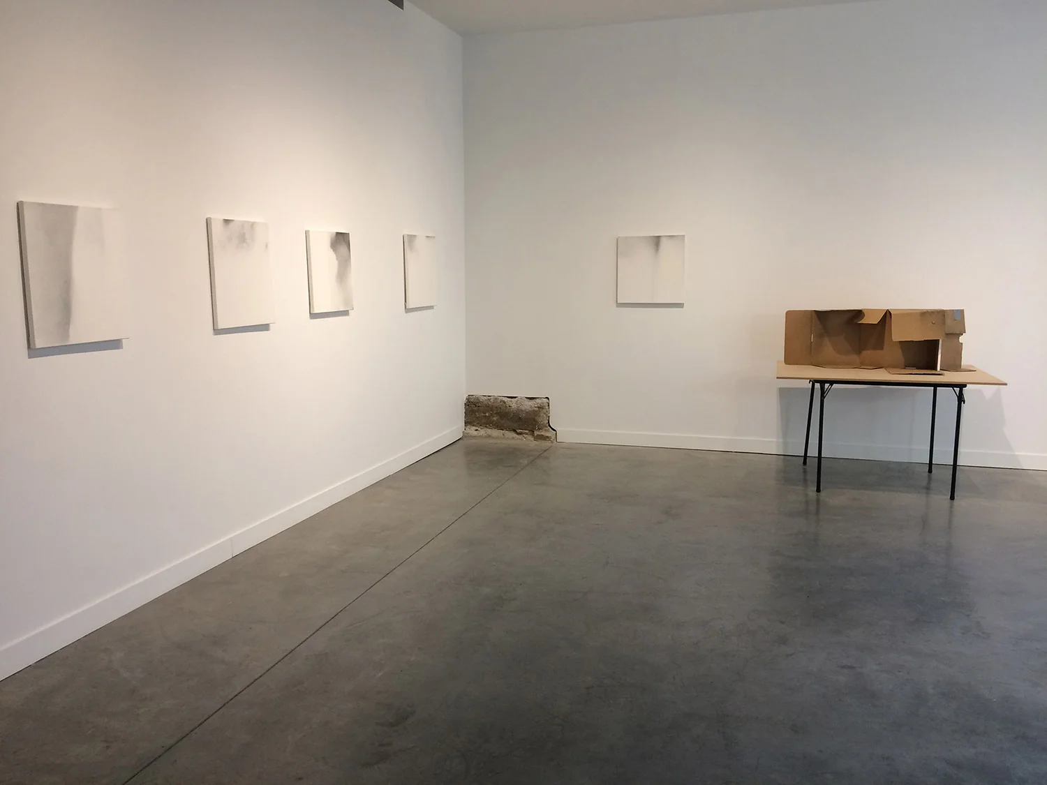 Installation view, Set-ups, small cardboards